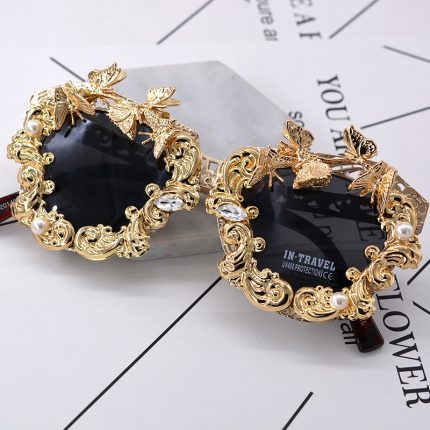 Vintage Carved Hollow Diamond Inlaid Pearl Sunglasses