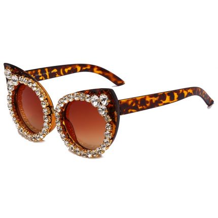 Cats Eye Shape Frame Inlaid Diamond Sunglasses