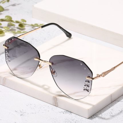 Diamond studded Color Lens Metal Frame Irregular Sunglasses