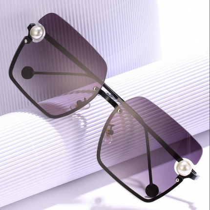 Geometric Large Lens Inlaid Pearl Sunglasses