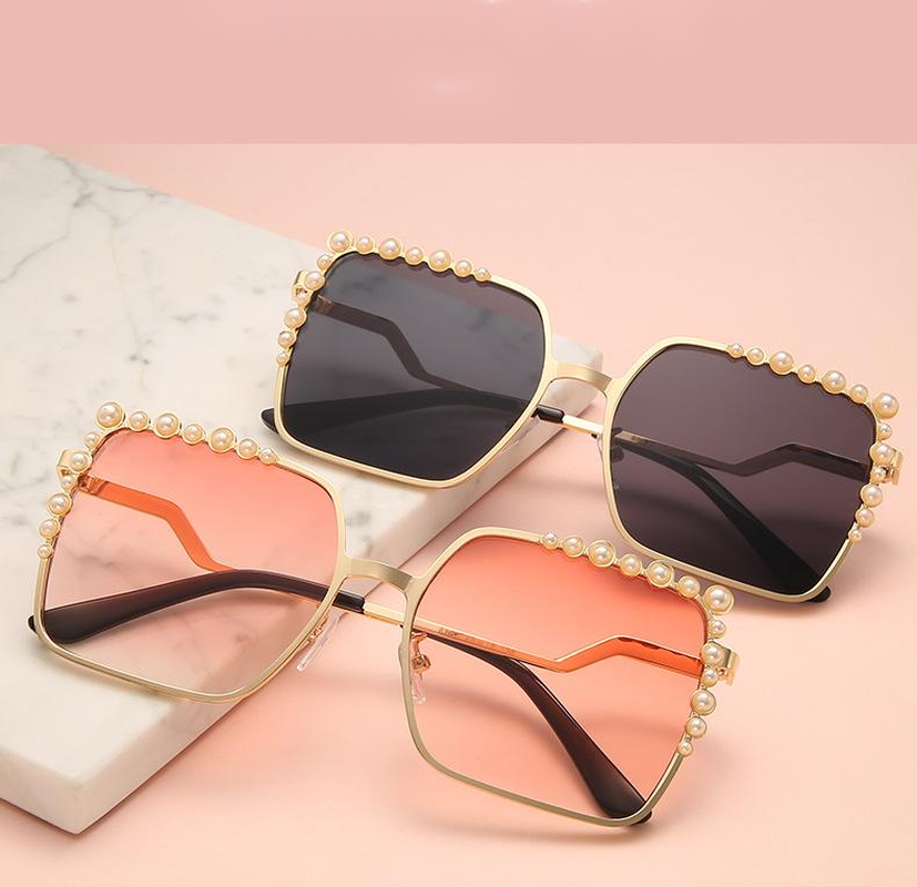 Large Frame Diamond Pearl Square Sunglasses