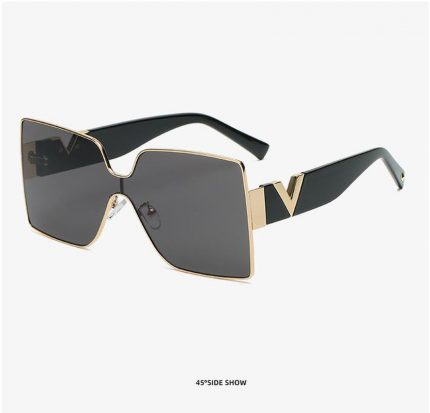 Onepiece Largeframe Metal Vshaped Decorative Sunglasses