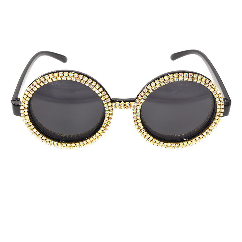 Personalized Three dimensional Diamond inlaid Round Retro Sunglasses