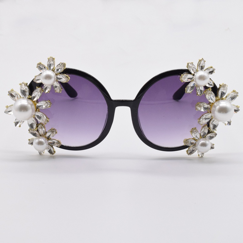 Personality Street Style Diamonds Pearls Flowers Sunglasses