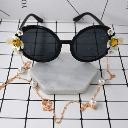 Retro Baroque Flower Crystal Pearl Chain Sunglasses