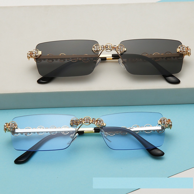 Rimless Diamondstudded Irregular Cutedge Sunglasses