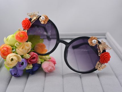 Round Frame Onepiece Lens Inlaid Diamond Sunglasses