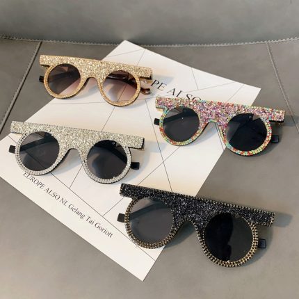 Round Frame Onepiece Lens Inlaid Diamond Sunglasses