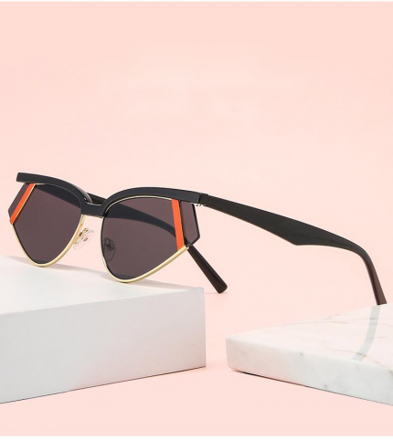 Stripe Cat Eye Shape Lens Halfrim Sunglasses