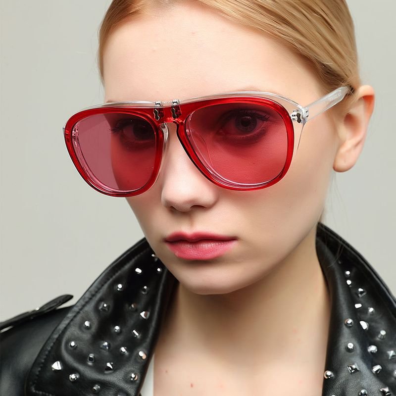 Double Flip Retro Big Frame Yellow Transparent Lens Glasses