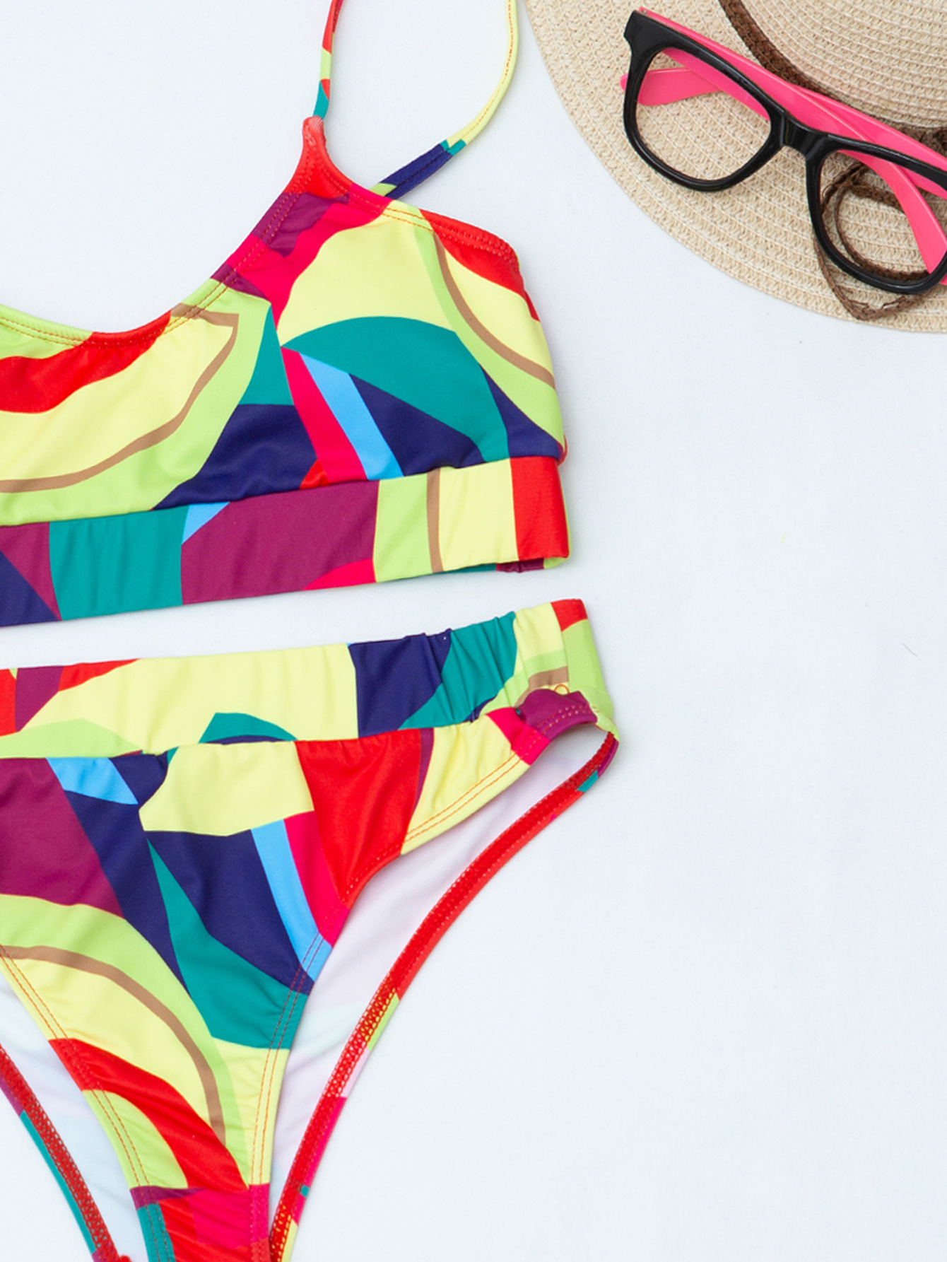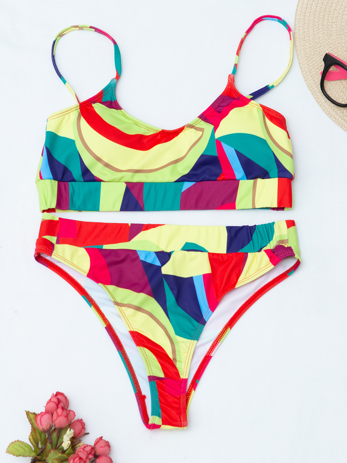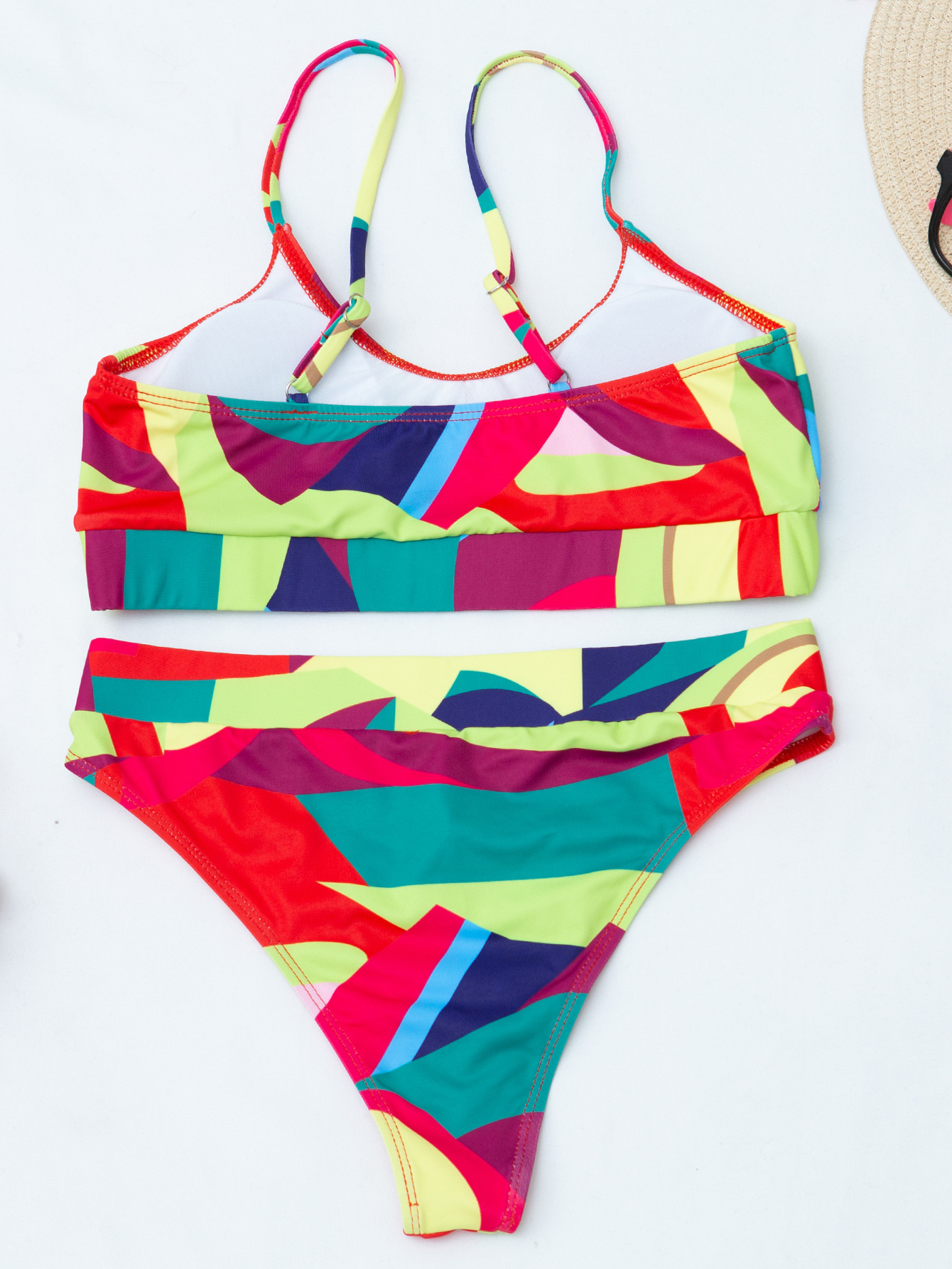 Ladies Color Printing Stitching Contrast Color Two-piece Swimsuit
