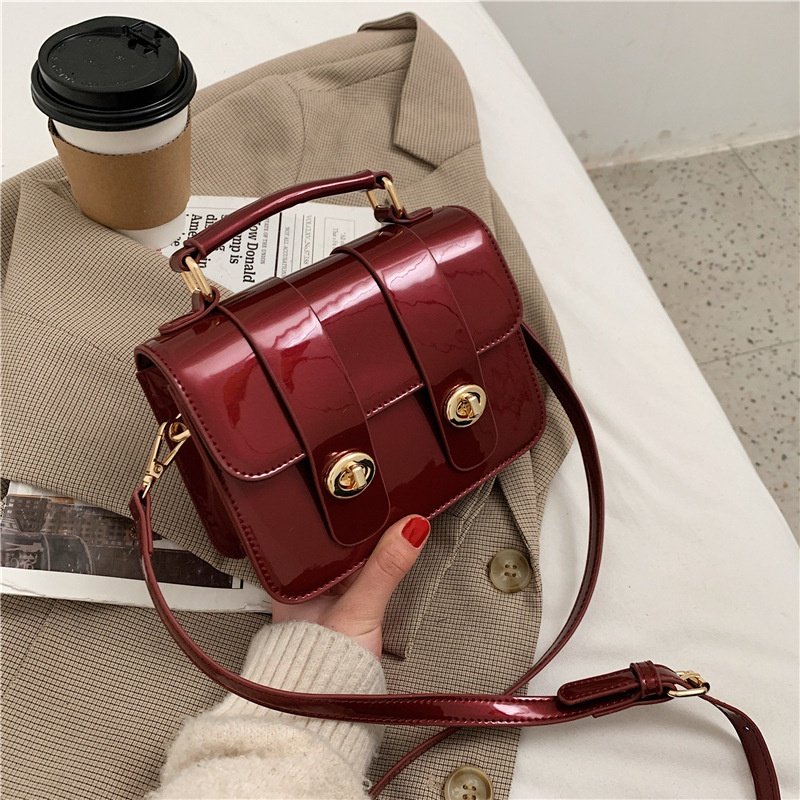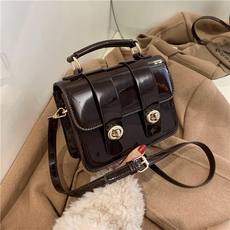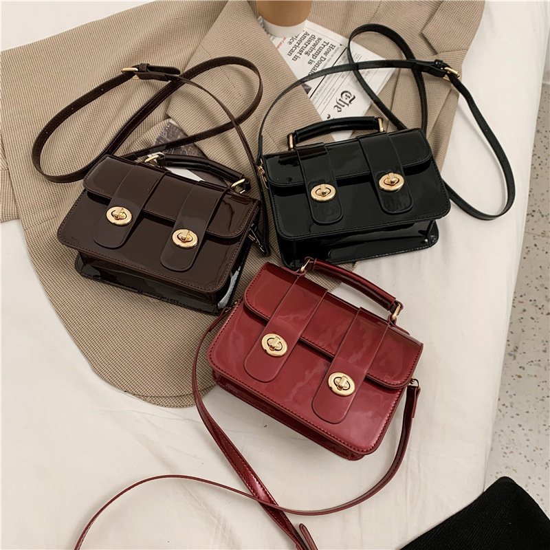 Leather Portable Lock Square Bag