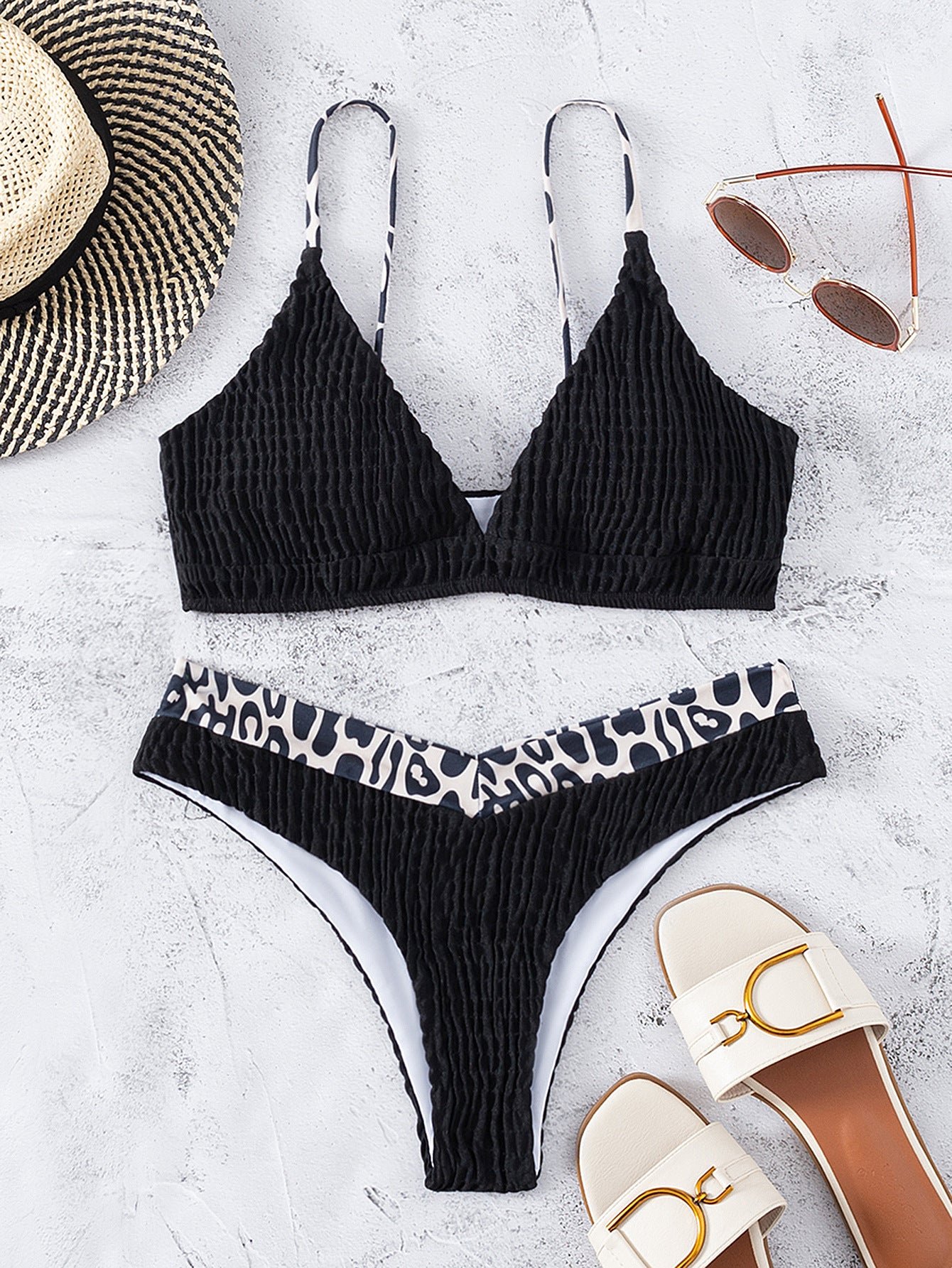 Leopard Print Open Back Thin Strap Sexy High Waist Beach Bikini