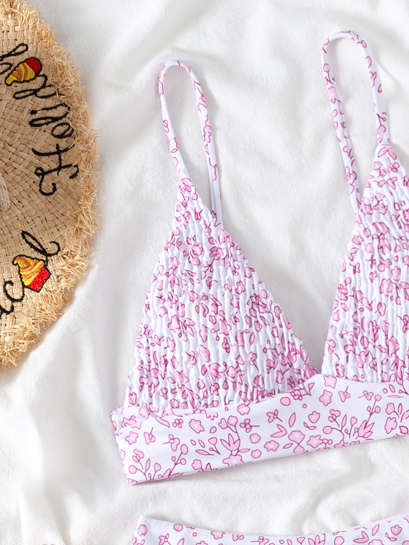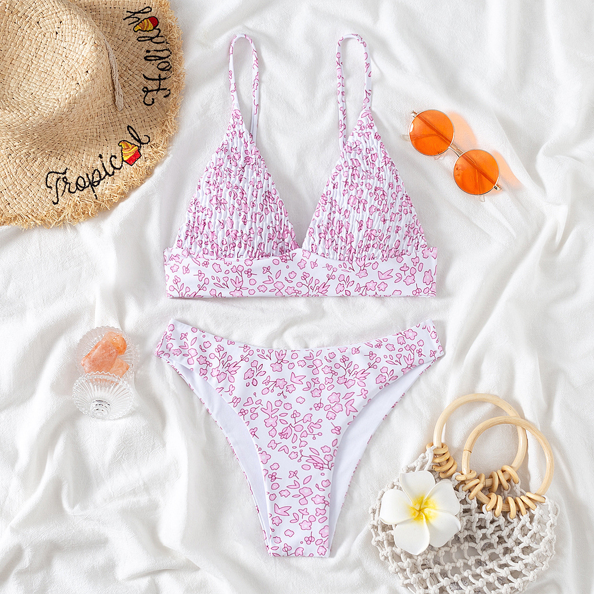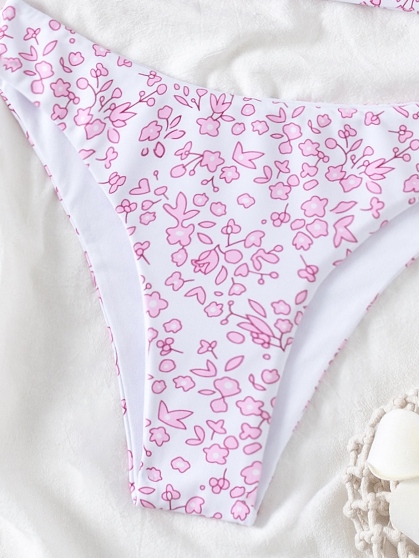 New Light Pink Floral Print Sexy Small Fresh Bikini
