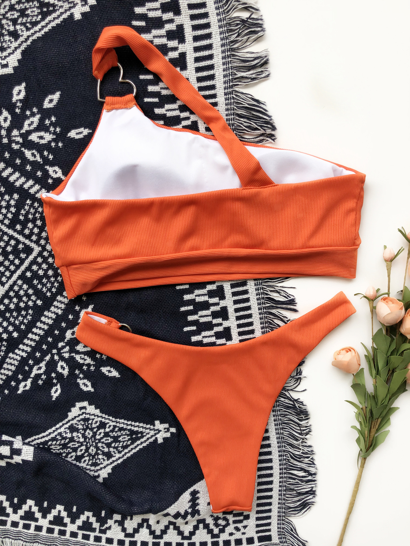 Be the first to review “New Orange Small Pit Strip Big Love One-shoulder Two-piece Swimsuit” Cancel reply