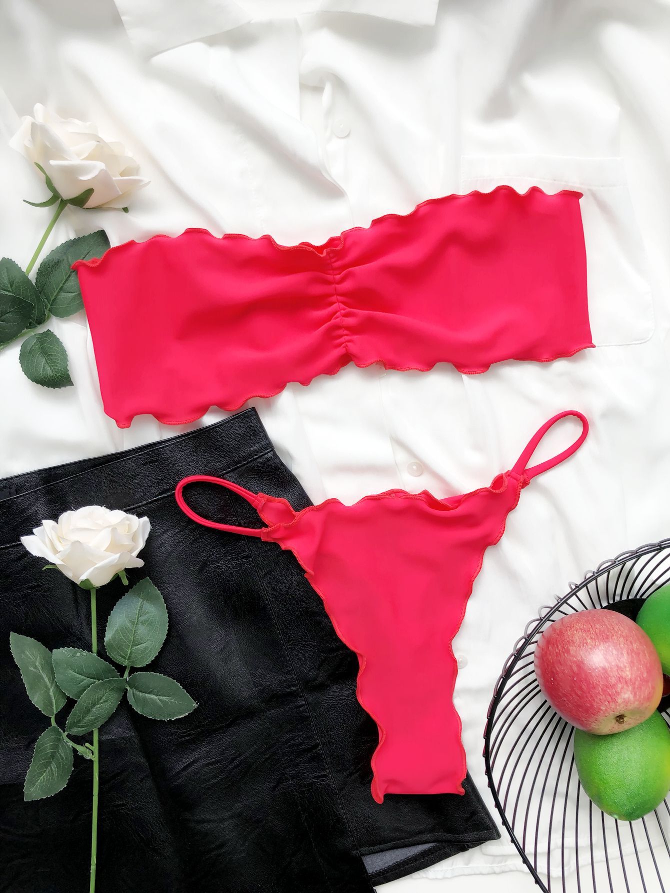 Be the first to review “New Style Chest-wrapped Watermelon Red Solid Color Pleated Beach Swimsuit”
