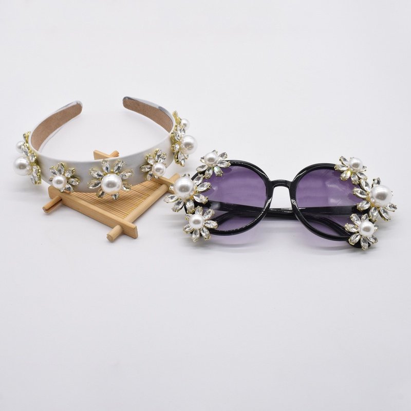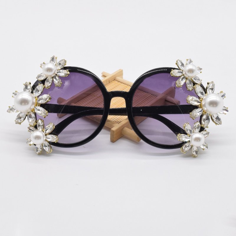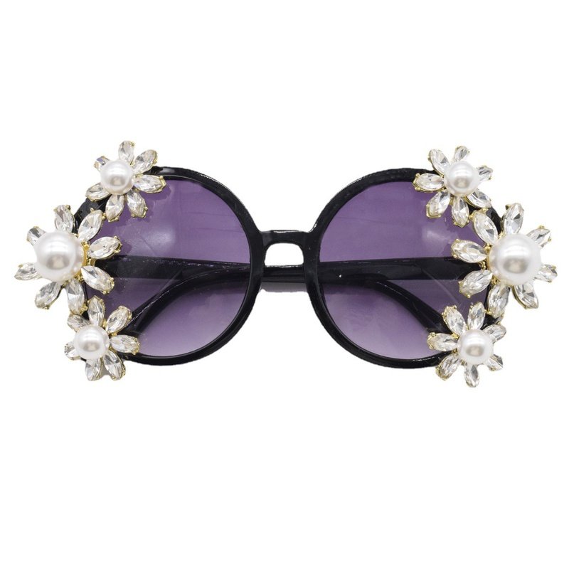 Personality Street Style Diamonds Pearls Flowers Sunglasses