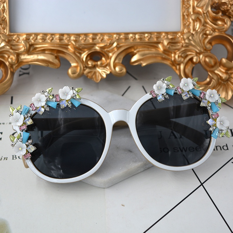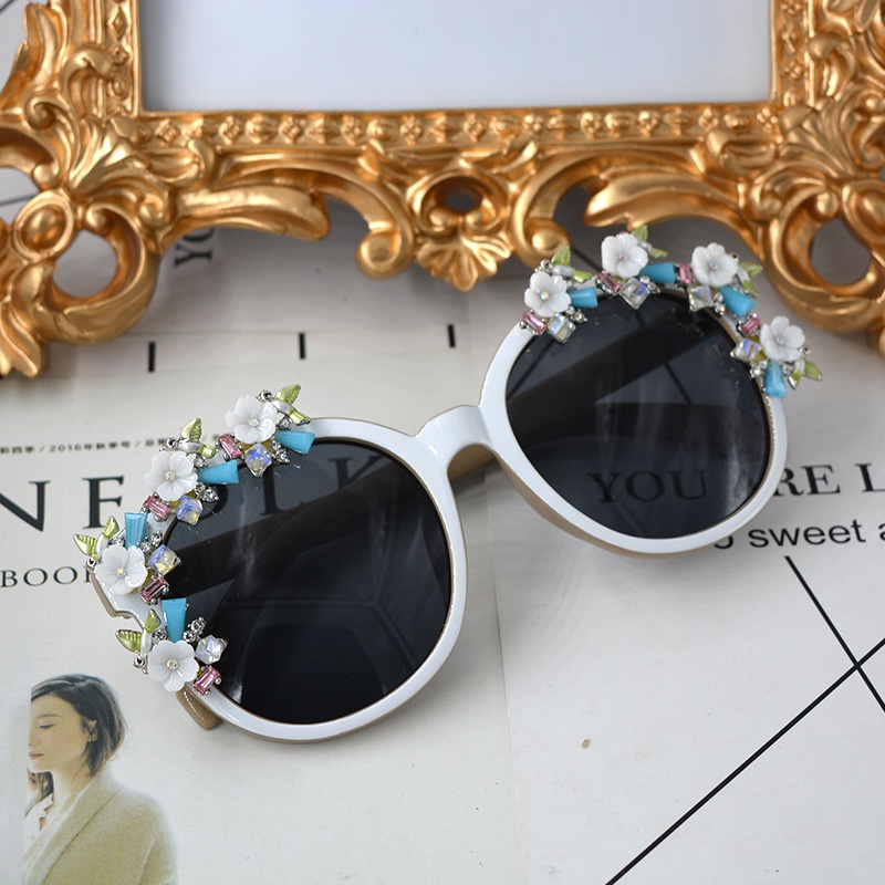 Purple Pink Mirror Petal Round Diamond Flower Sunglasses