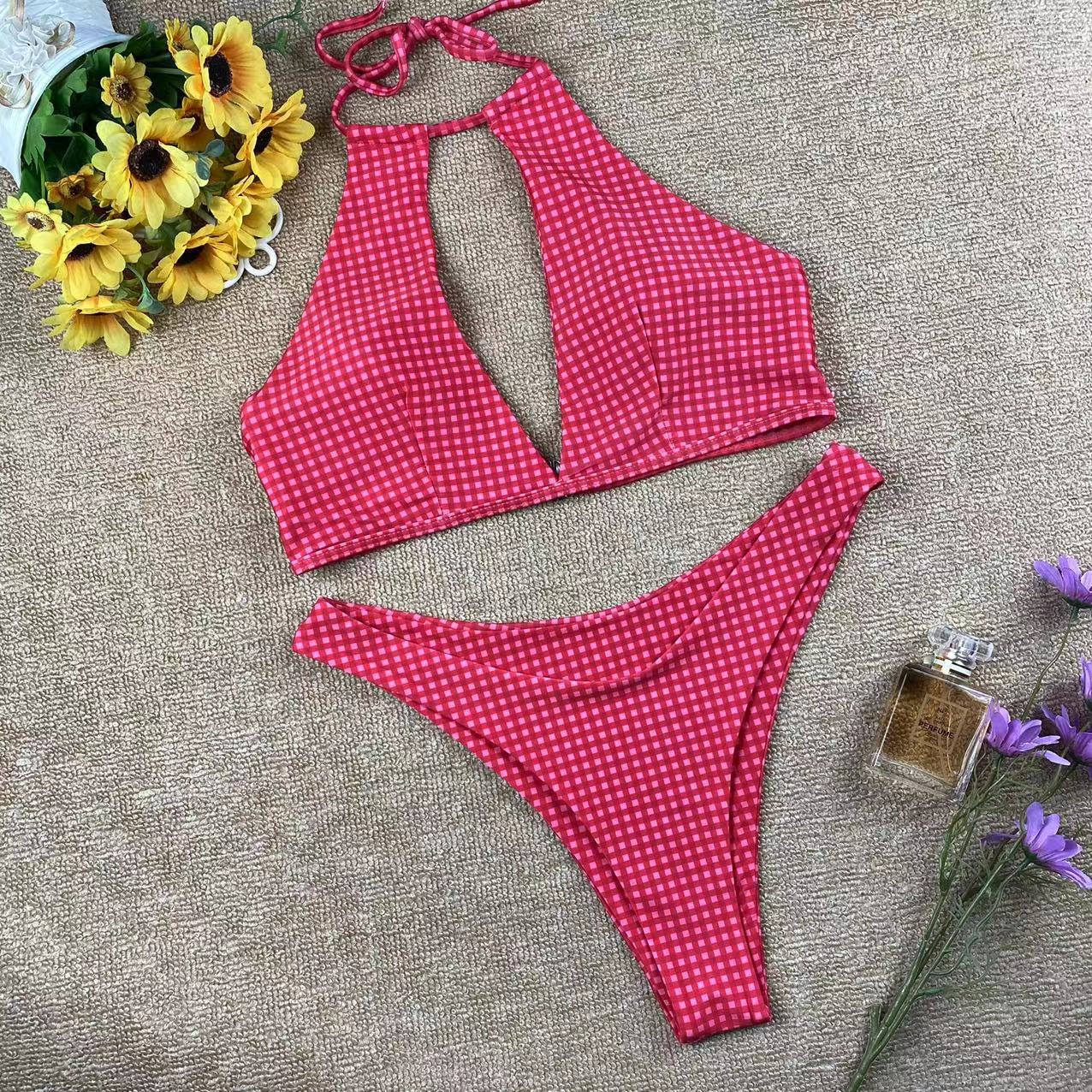 Be the first to review “Rose Red Wave Point Neck Hanging Deep V Backless Swimsuit Beach Bikini” Cancel reply